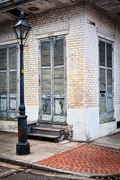 Lamppost and Shuttered Door, French Quarter, New Orleans