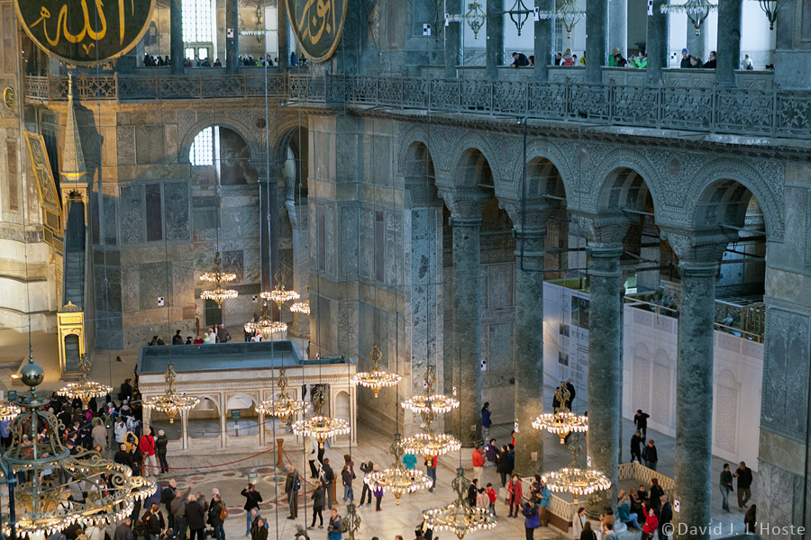 Gallery, columns, and chandeliers - Hagia Sophia