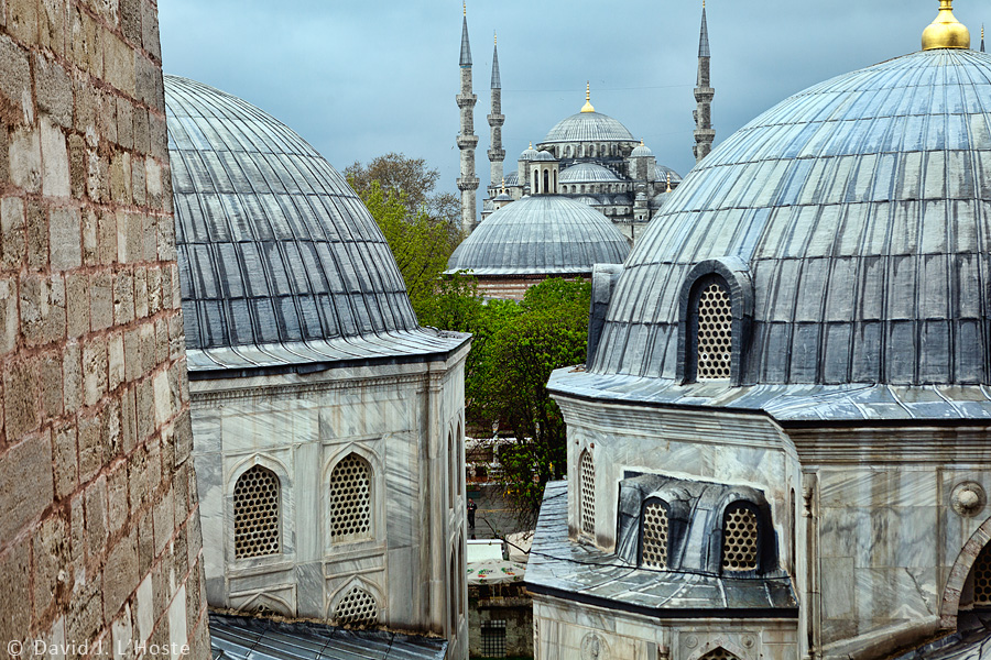 View of Blue Mosque from upper gallery window of Hagia Sophia.