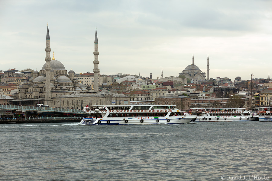 Left to right: Galata Bridge, Yeni Camii (New Mosque) and Rüstem Pasha Mosque