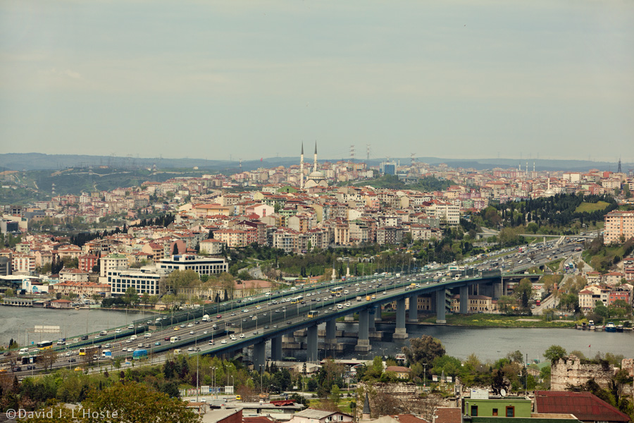 View across the Golden Horn from atop Theodosian Wall near Kariye Museum (St. Savior Church in Chora)