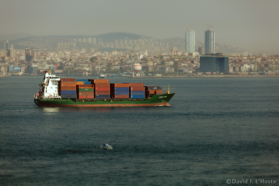 Container vessel leaving Bosphorus Strait for Sea of Marmara
