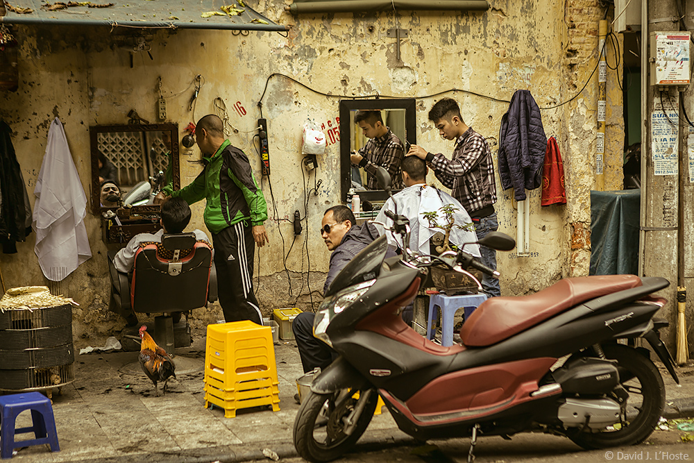 Sidewalk Barber, Old Quarter, Hanoi, Vietnam