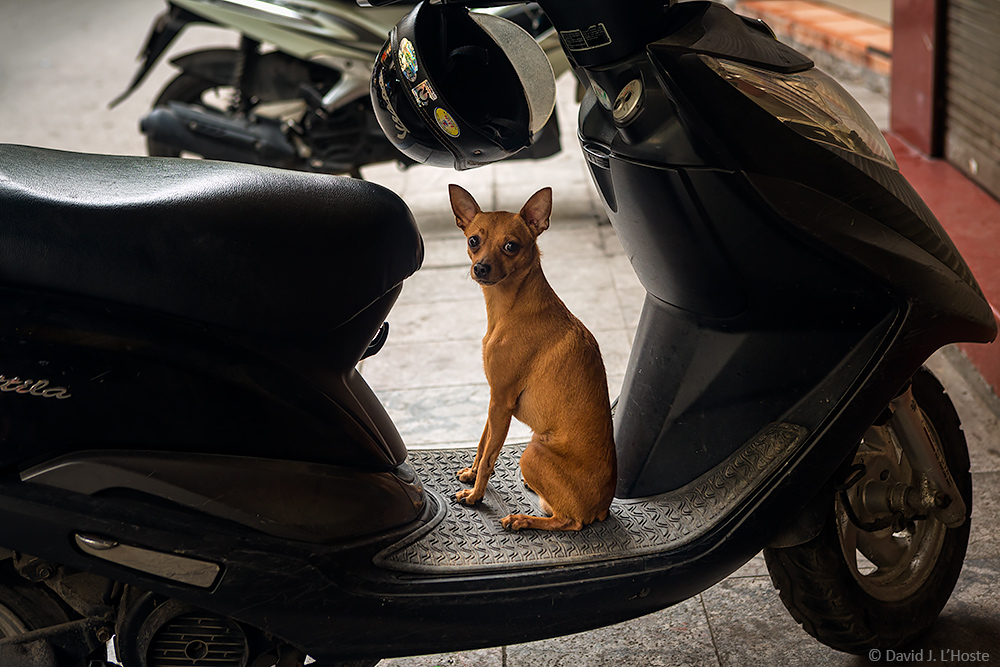 Scooter Dog. Old Quarter, Hanoi, Vietnam.