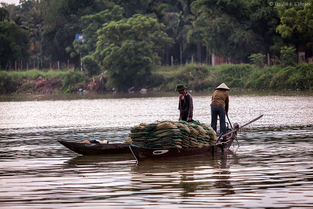 Working sampans, Thu Bon River, Hoi An, Vietnam
