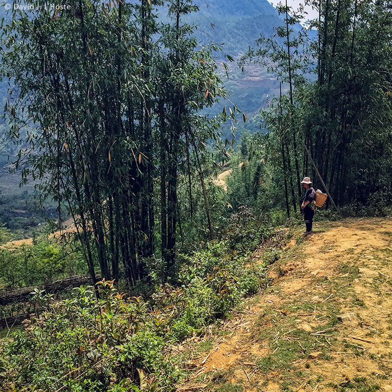 | During our hike Zu received a cellphone call from her husband who was working their land high above Hầu Thào. When she hung up she told me her husband was just heading home from the fields to cook rice for lunch, and she almost apologetically asked if I would mind waiting to eat until the end of our trek, where I could share lunch with her family in her home. Of course, I was thrilled. She thanked me, indicating it was better for her not to have to buy my lunch. |
