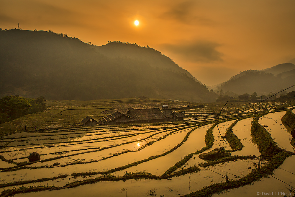 Black Hmong homestead and terraced rice paddies near Sapa.