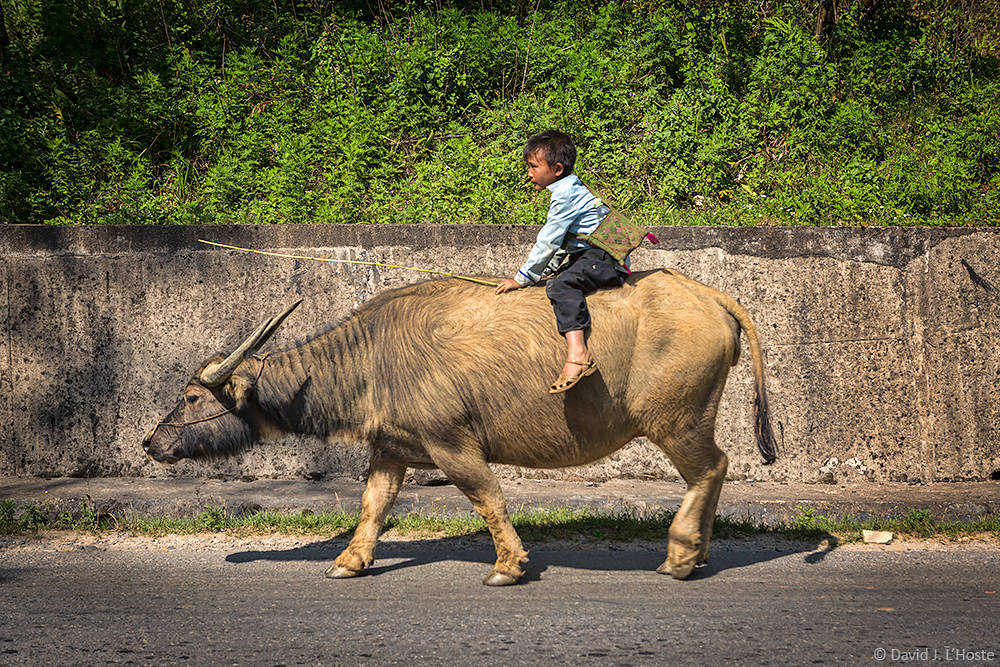 Young Boy Riding Water Buffalo