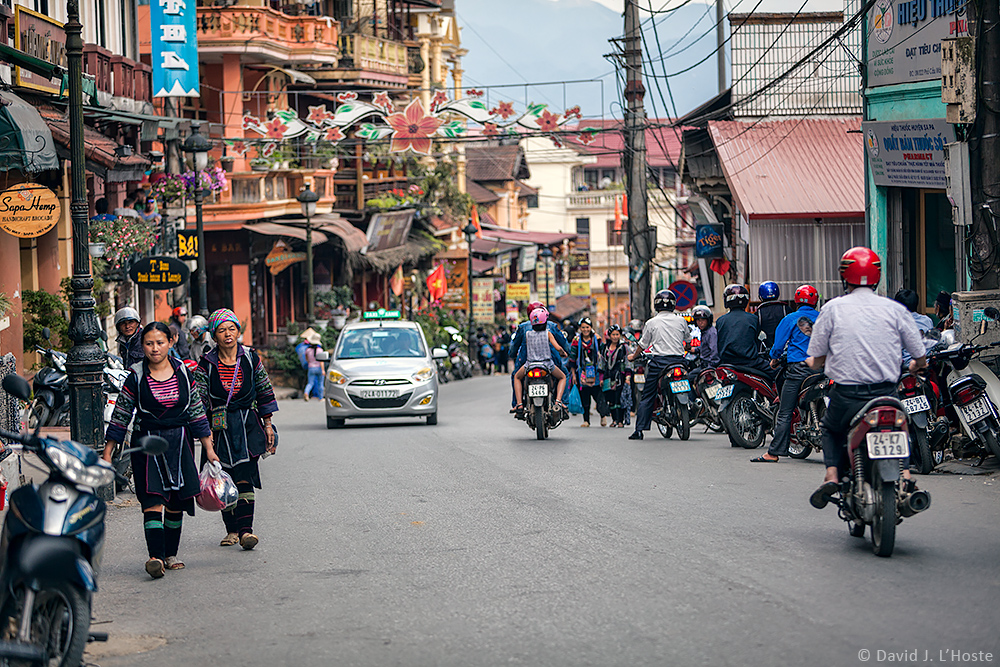 Cau May Street in Sapa is filled with hotels, restaurants, bars, cafes, outfitters and guide shops.