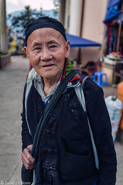 | This elderly Black Hmong gentleman saw me standing in the street in Sapa, staring off into space. He approached and asked, "Parlez francais?" Which, of course, I don't beyond the ability to order another beer: "encore une bière s'il vous plaît." I suspect he was around when the French controlled Sapa. We had a pleasant 5 minute exchange of sign language, smiles and uttering incomprehensible things at each other. |