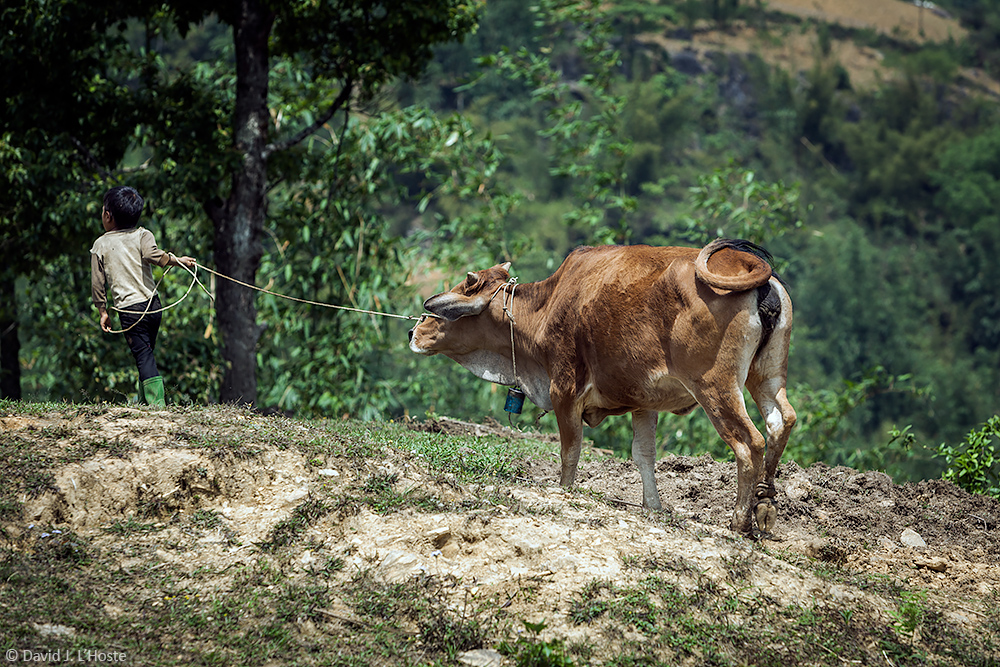 Boy leading cow near Sapa, Vietnam. (sapa-2347)